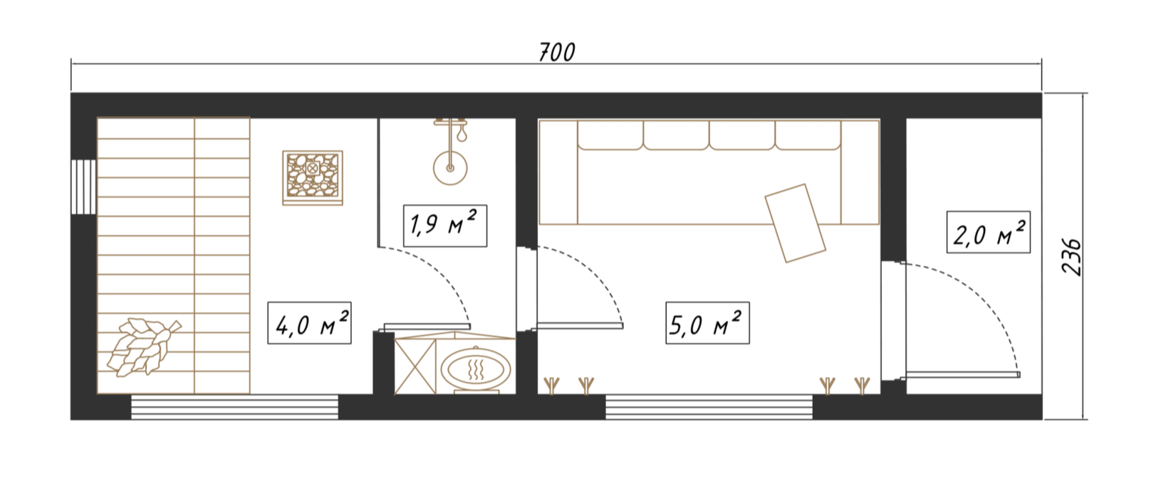 - Баня с душевой, комнатой отдыха и крыльцом B1.40