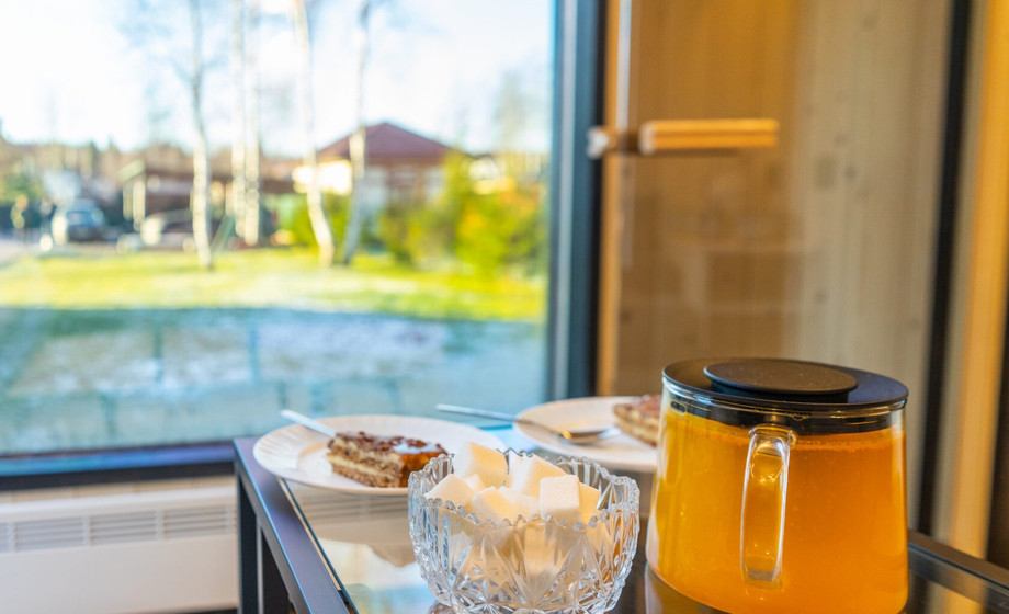 - Комната отдыха: вагонка штиль сорт АВ, 12x110. Без покраски. На полу доска пола хвоя, сорт АВ, покрыта Teknos Satu Saunasoja цвет на выбор.