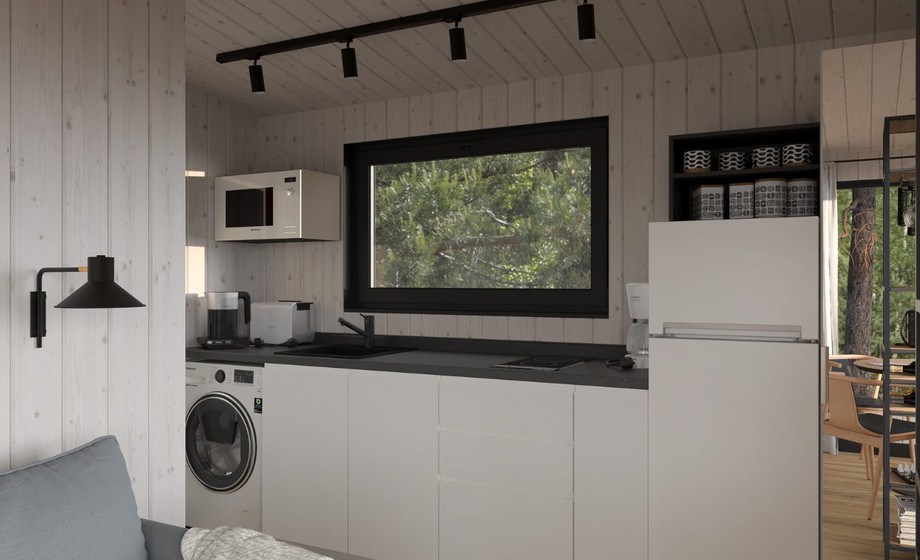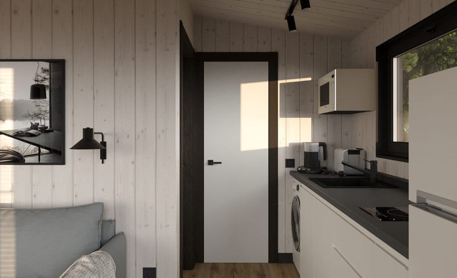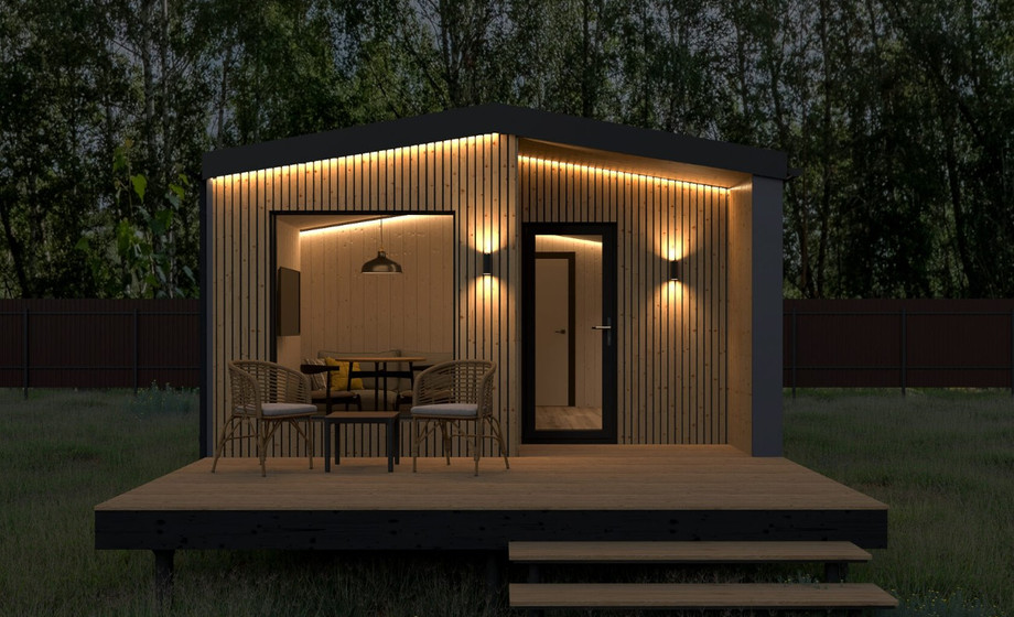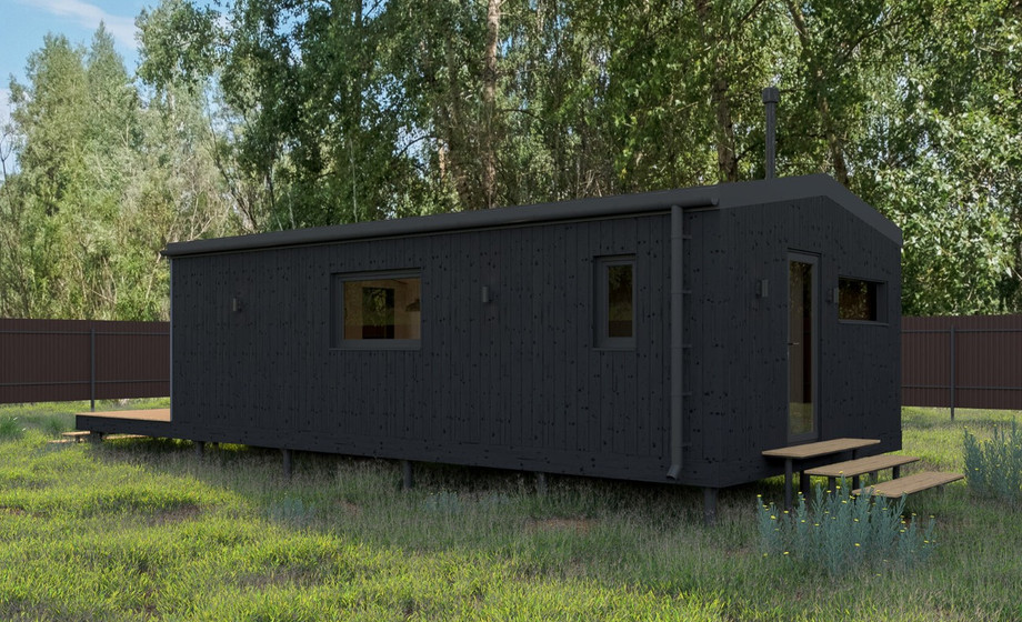 - Баня-дом c предбанником, душем, туалетом, кухней-гостиной, спальней и крыльцом BD2.50