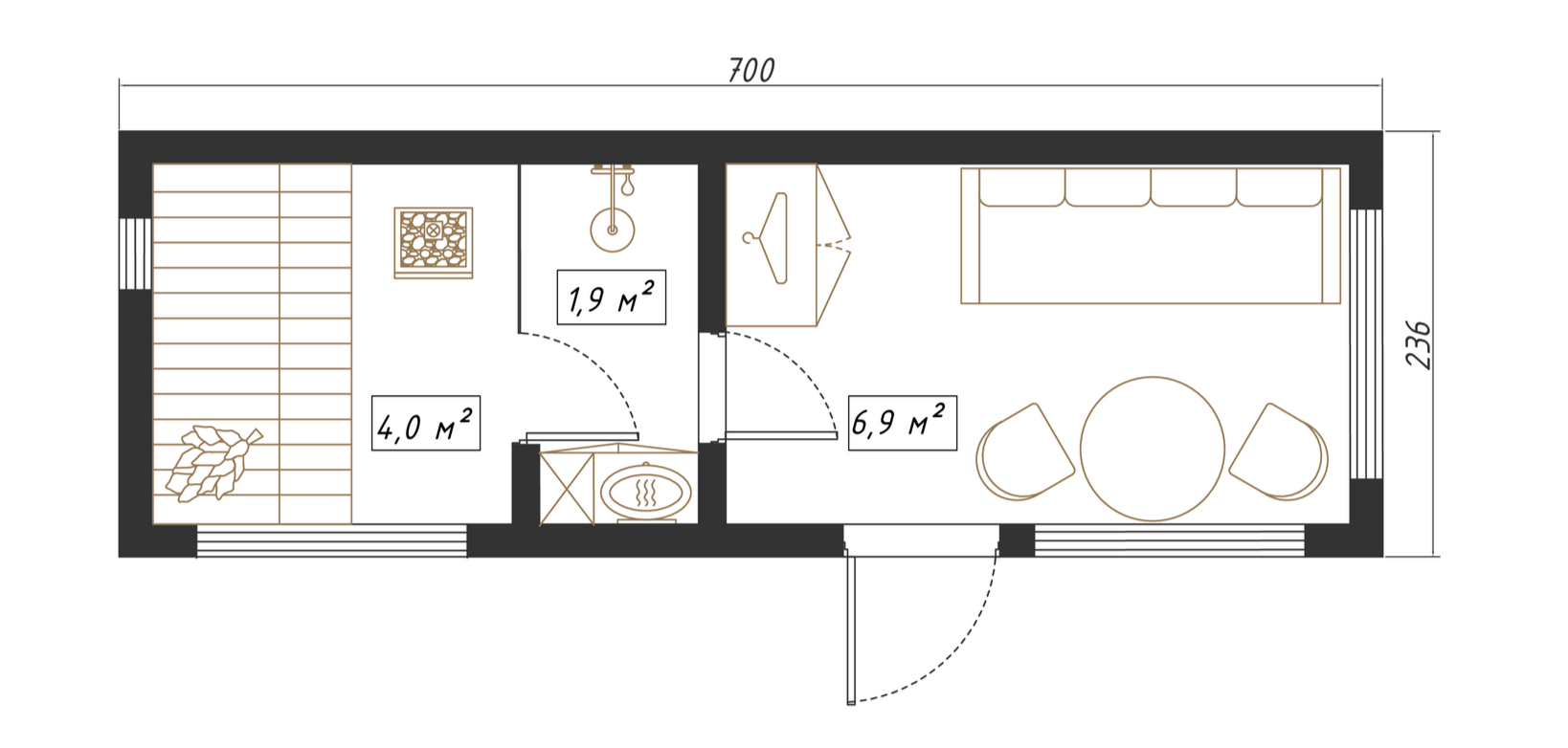 - Баня с душевой и комнатой отдыха с 2 панорамными окнами B1.50