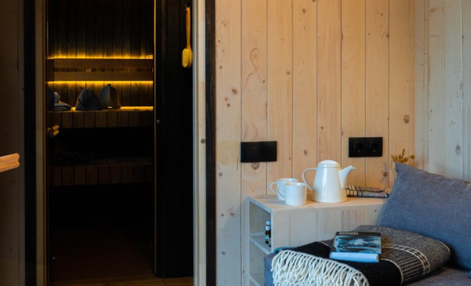 - Комната отдыха: вагонка штиль сорт АВ, 12x110. Без покраски. На полу доска пола хвоя, сорт АВ, покрыта Teknos Satu Saunasoja цвет на выбор.
