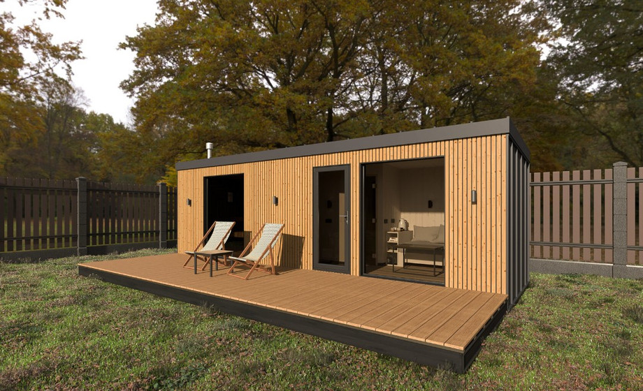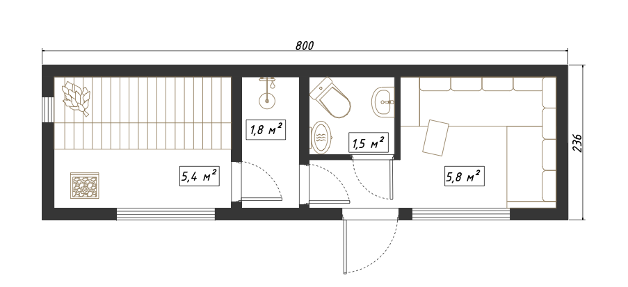 - Баня с окнами в пол, увеличенной парной, душевой, туалетом и комнатой отдыха B1.120