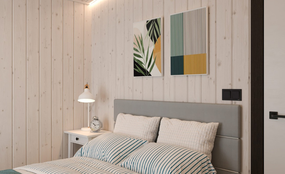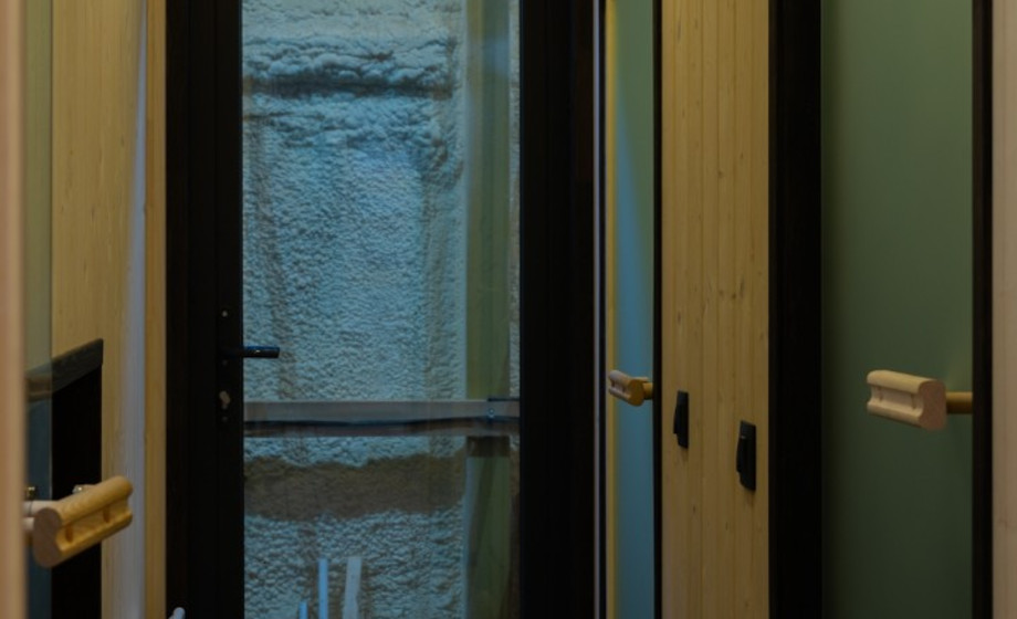 - Комната отдыха: вагонка штиль сорт АВ, 12x110. Без покраски. На полу доска пола хвоя, сорт АВ, покрыта Teknos Satu Saunasoja цвет на выбор.