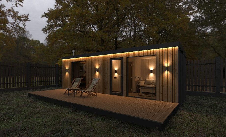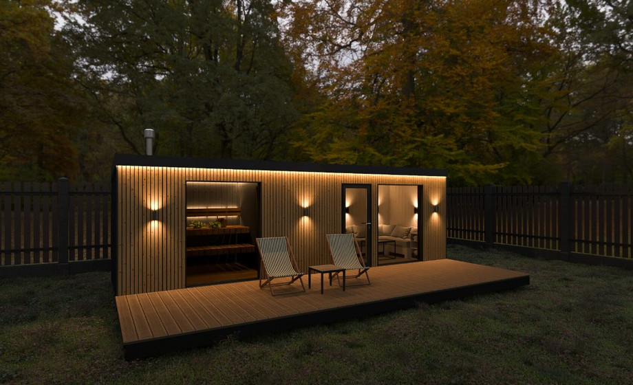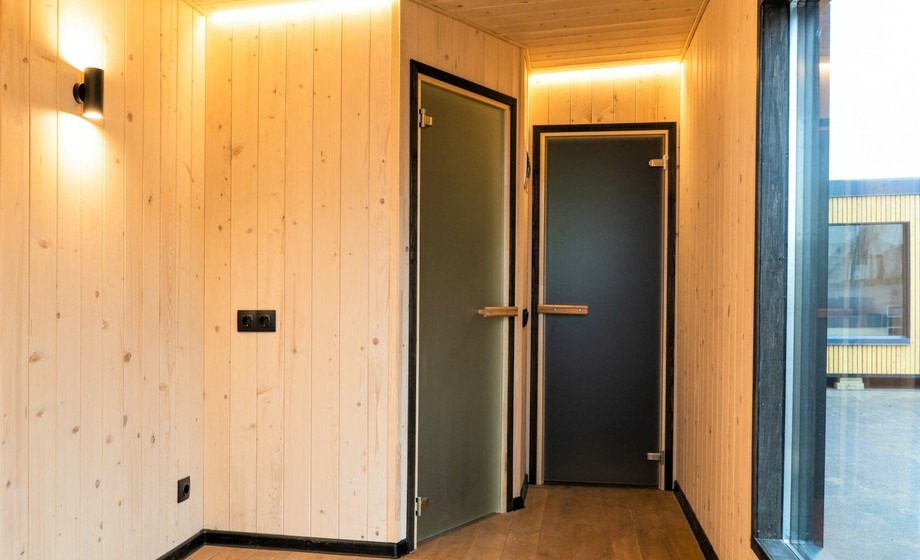 - Баня с окнами в пол, увеличенной парной, душевой, туалетом и комнатой отдыха B1.120