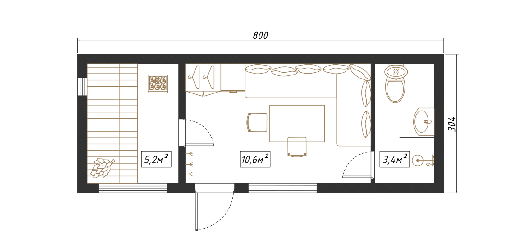 - Баня с просторной комнатой отдыха и совмещенным санузлом BN1.20